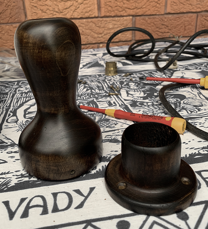 This lamp features a beautiful and unique style timber handle, and not widely seen. So much was the lamp sought after by passers-by that I even had a request if I would sell the piece as is.