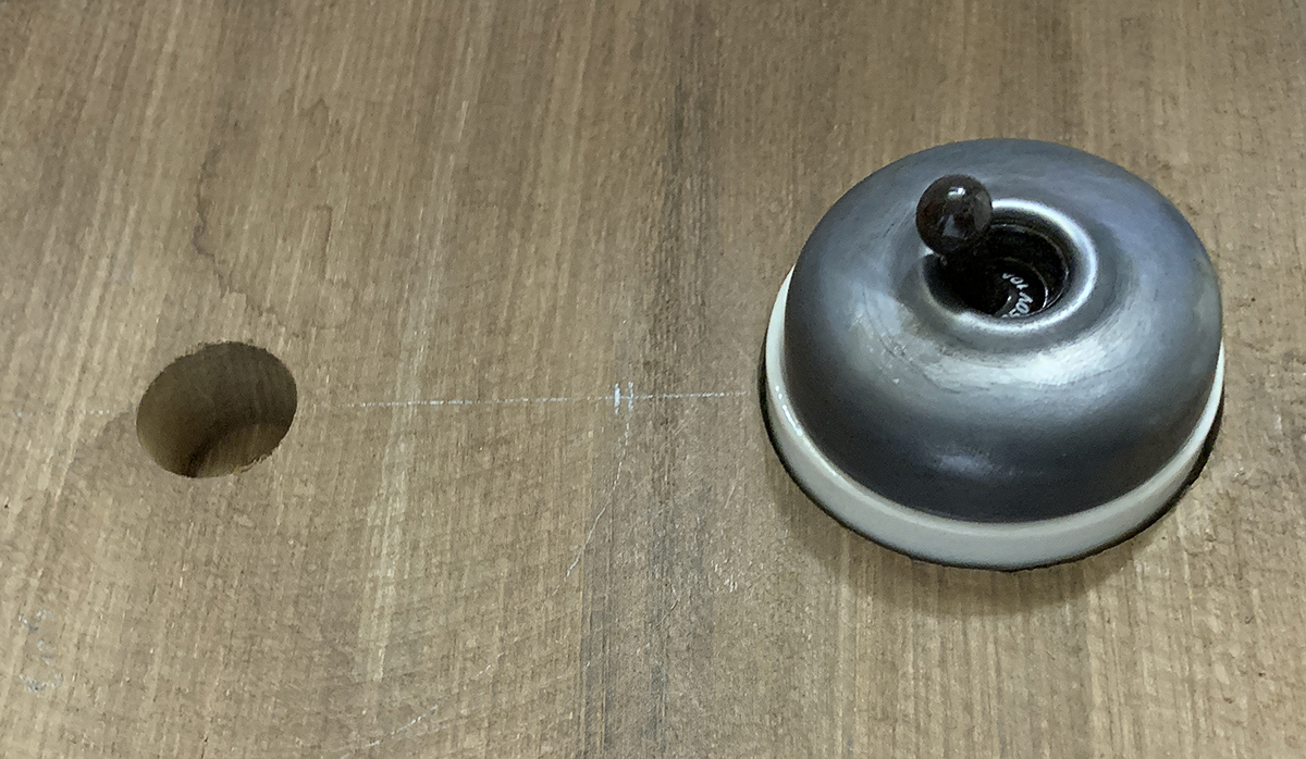 This part of the design would necessitate the boring of an 8mm horizontal access hole, 260mm deep to reach the switch from the backside face of the timber.